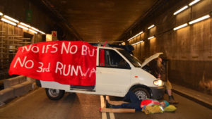 With a decision on whether to allow the building of a third runway at Heathrow airport due soon, climate change protesters cause traffic chaos by blocking car access to several terminals.