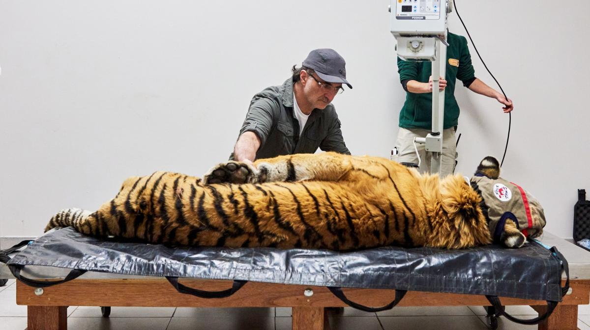 Noel’s patients – in wildlife reserves, orphanages, and sanctuaries - include a rhino, mauled by hyenas and in need of a new prosthetic limb, and another being fitted with anti-poaching protection; and a tiger and a lion who after a lifetime of suffering may finally be given a life free from pain.